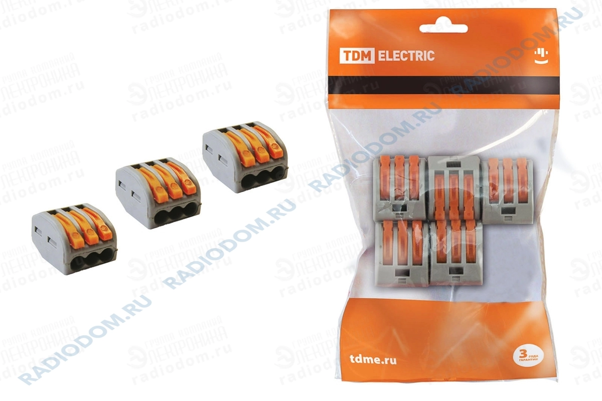 Клемма соединительная многоразовая 3-х проводная СК-413 (0,1-2,5мм²) упак.5 шт. TDM ELECTRIC