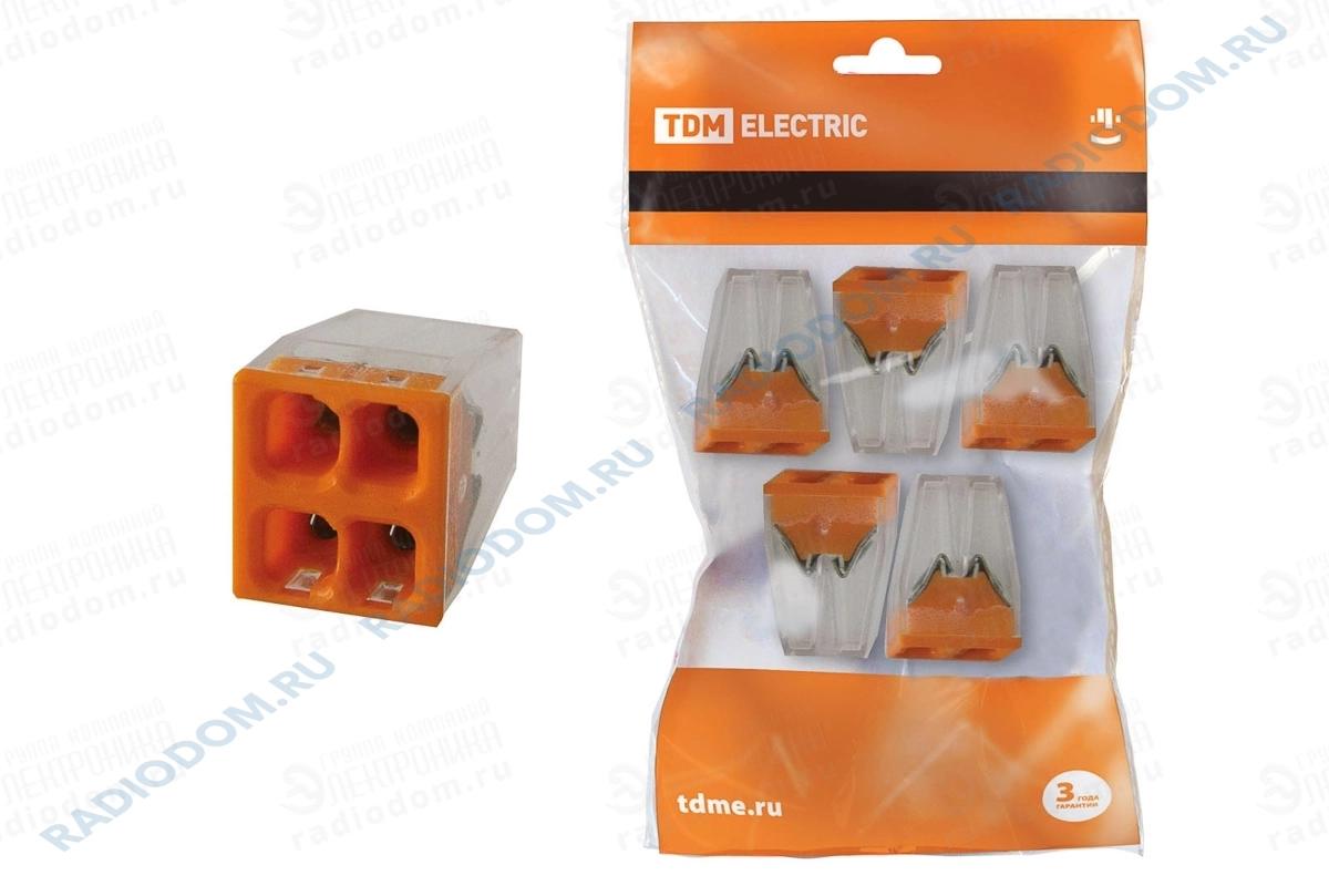 Клемма строительно-монтажная с пастой 4х2,5мм2 КБМ 2273-232 упак.5 шт. TDM ELECTRIC