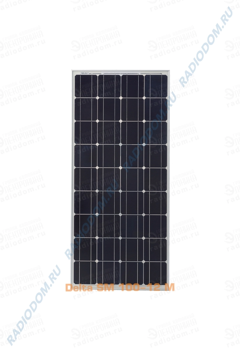 Модель солнечной панели Delta SM 100-12 M монокристаллического типа в точке максимальной мощности 100 Вт, Номинальное напряжение панели – 12 В.
