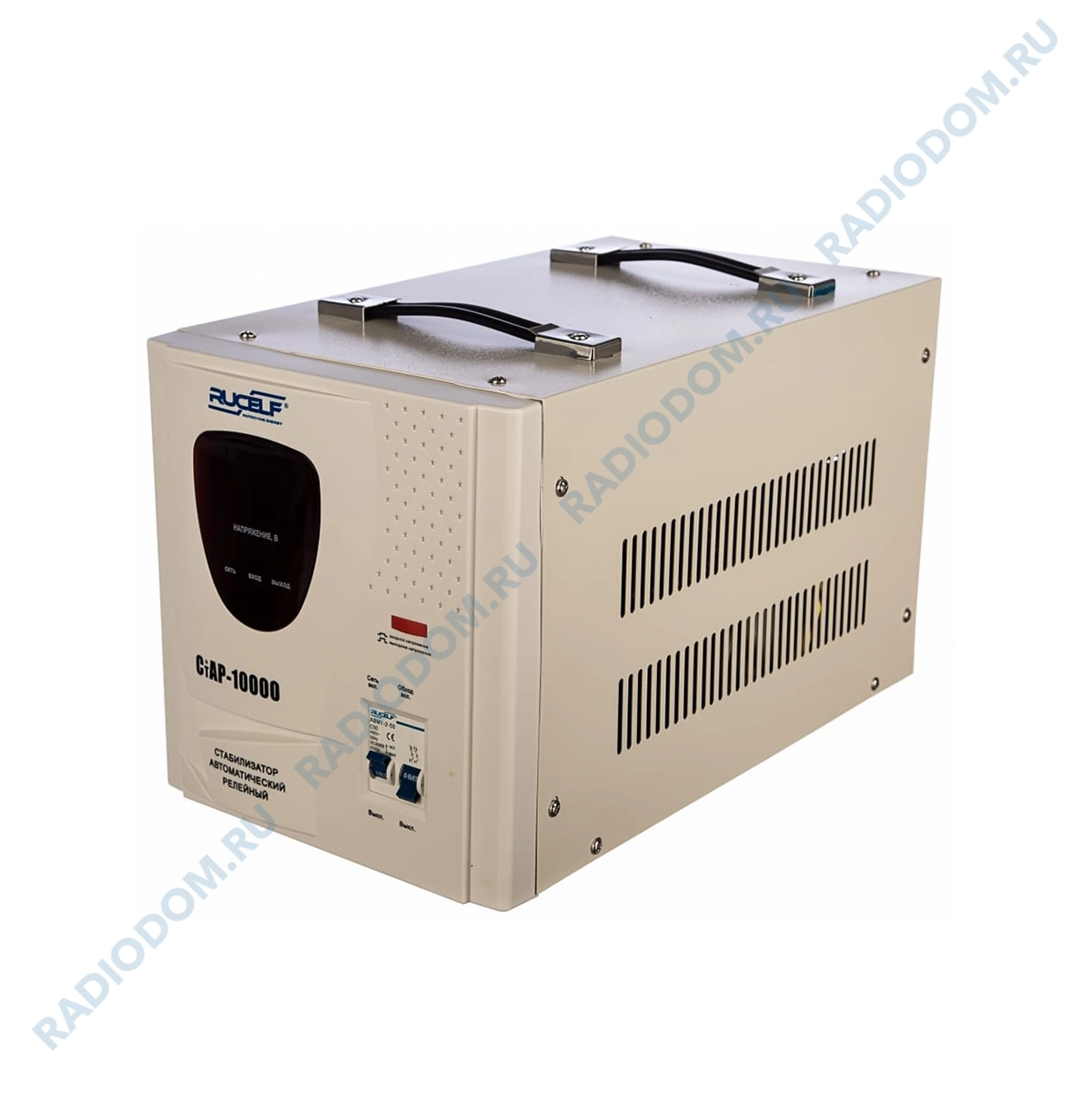 Стабилизатор напряжения RUCELF СтАР-10000VA выравнивает напряжение в однофазной сети. Небольшой вес и габариты позволяют легко перемещать и устанавливать прибор. Табло индикации отображает параметры входного и выходного напряжения, а также причину срабатывания защиты. Применяется для радио- и телеаппаратуры, бытовых котлов и осветительныx приборов. Задержка включения не предусматривается.