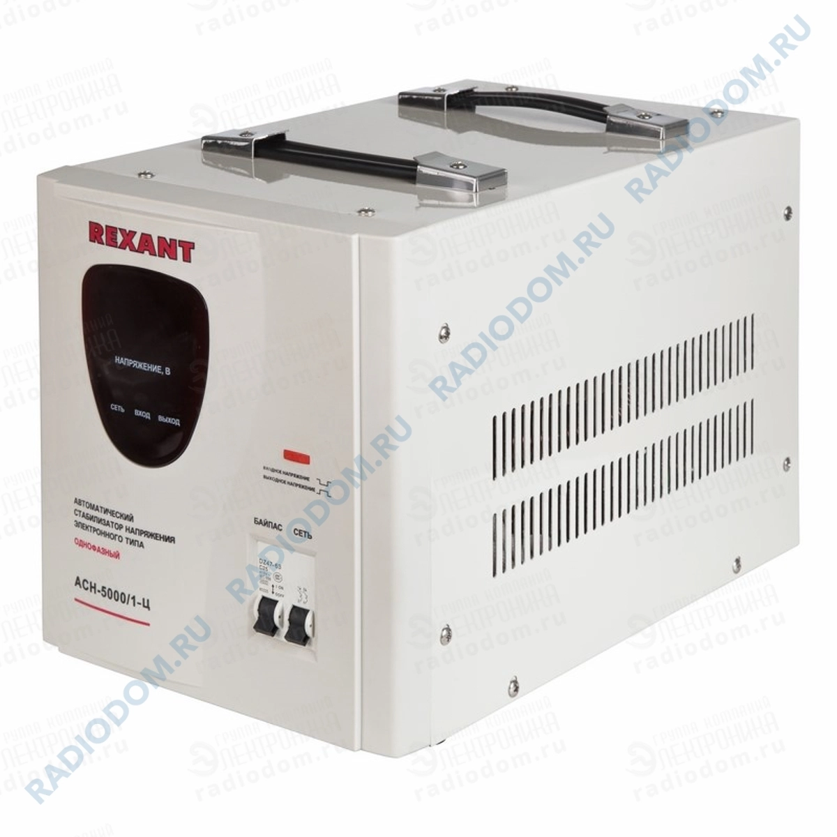 Однофазный стабилизатор переменного напряжения релейного типа марки REXANT предназначен для защиты различных бытовых и промышленных электроприборов от перепадов напряжения в сети и токов короткого замыкания.
