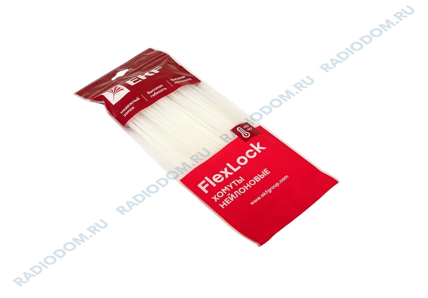 Хомут кабельный 200x3,6мм белый упаковка 100шт FlexLock EKF