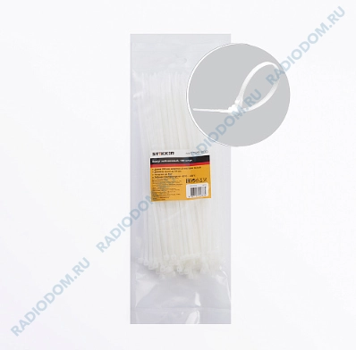 Хомут нейлоновый 2,5x200 мм, d пучка max 50 мм, нагрузка 8 кг, белый, NYCT25-200 (100шт в упак)