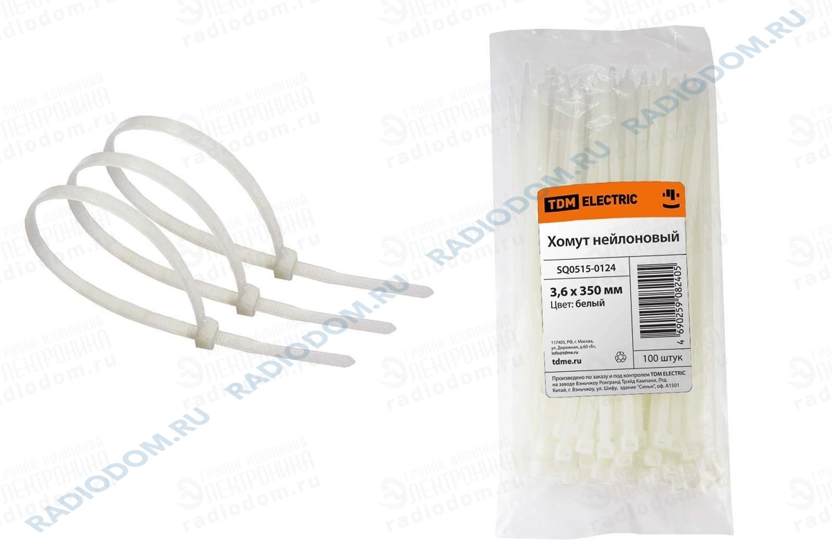 Хомут кабельный 350x3,6мм белый упаковка 100шт TDM ELECTRIC