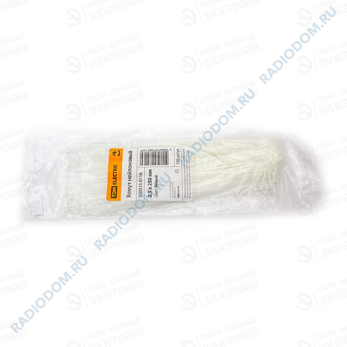 Хомут кабельный 250x2,5мм белый упаковка 100шт TDM ELECTRIC