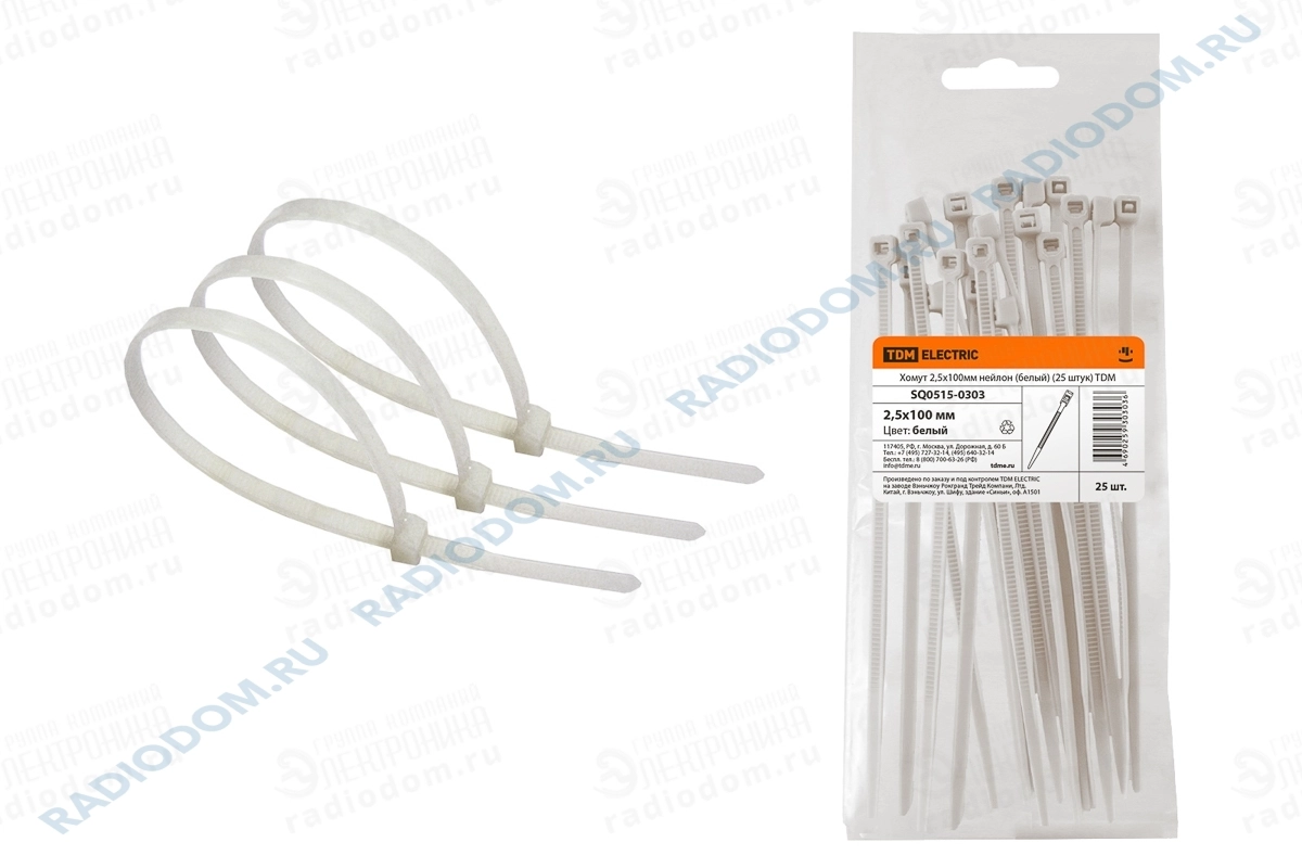 Хомут кабельный 100x2,5мм белый упаковка 25шт TDM ELECTRIC