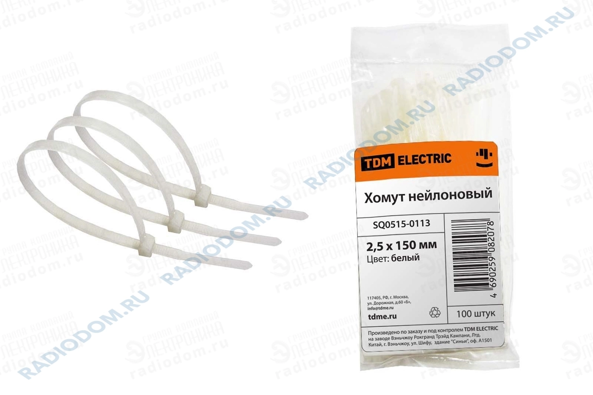 Хомут кабельный 150x2,5мм белый упаковка 100шт TDM ELECTRIC