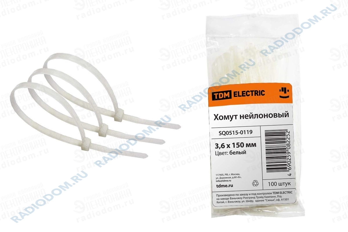 Хомут кабельный 150x3,6мм белый упаковка 100шт TDM ELECTRIC