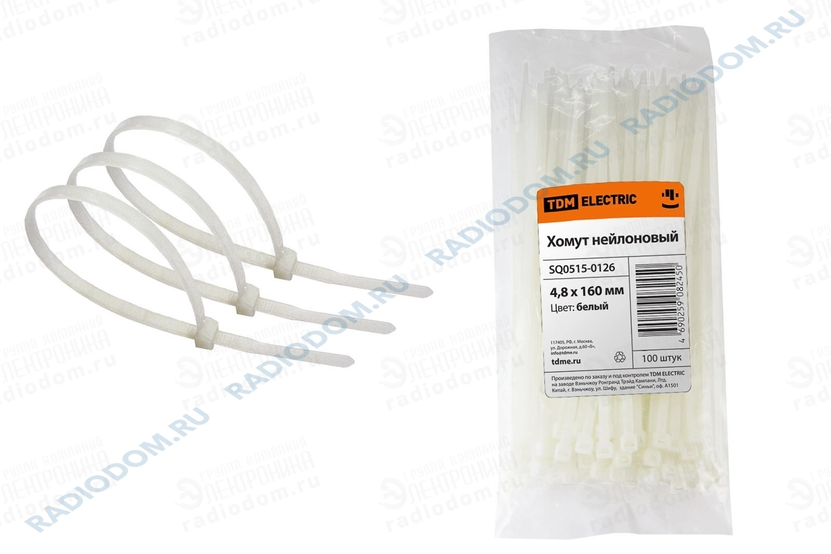 Хомут кабельный 160x4,8мм белый упаковка 100шт TDM ELECTRIC