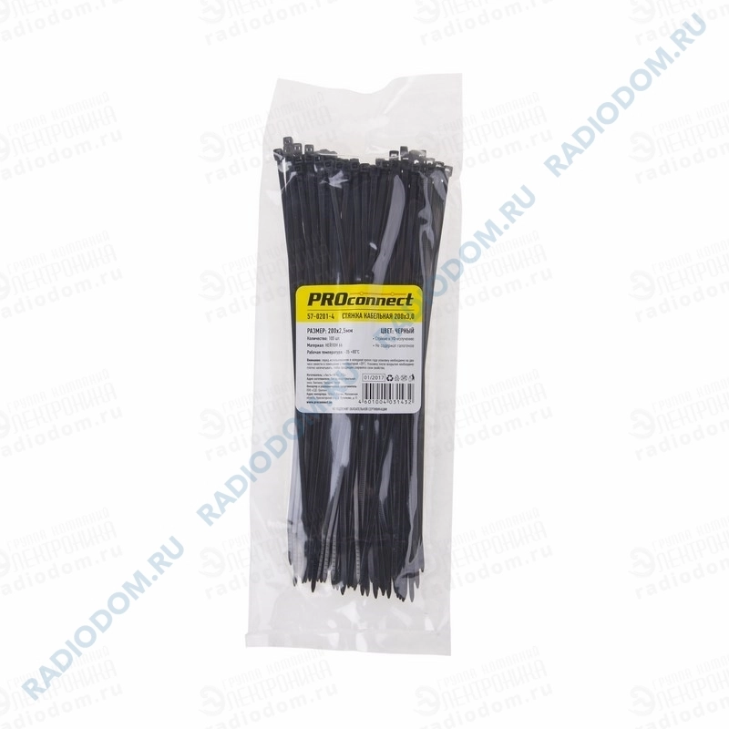Хомут кабельный 200x3мм черный упаковка 100шт PROconnect