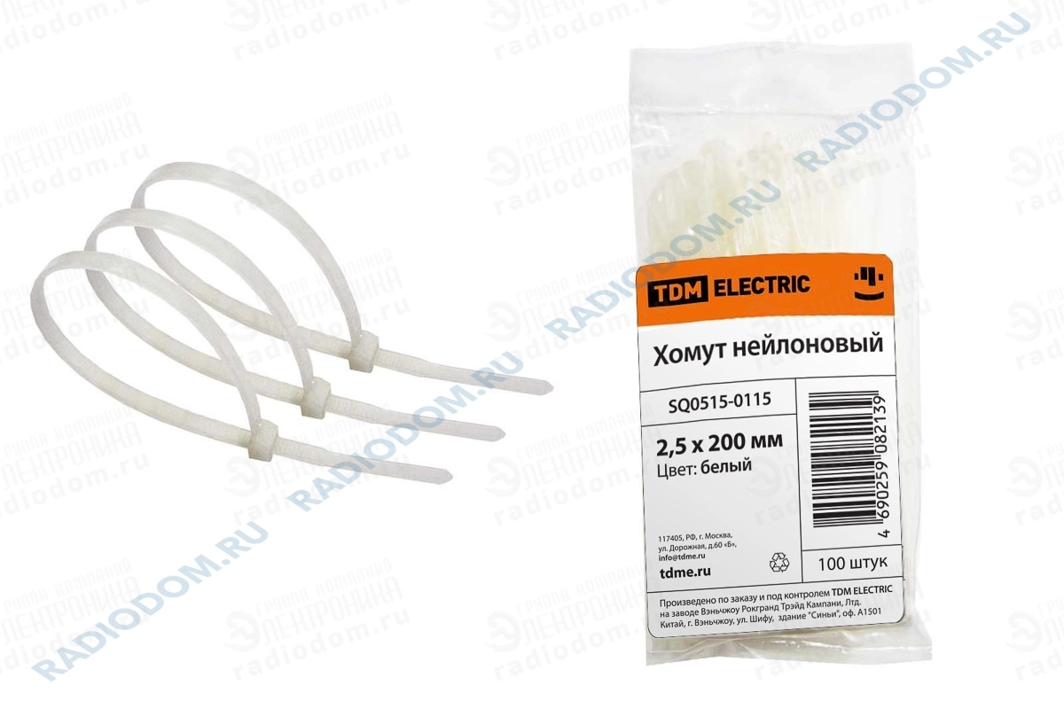 Хомут кабельный 200x2,5мм белый упаковка 100шт TDM ELECTRIC