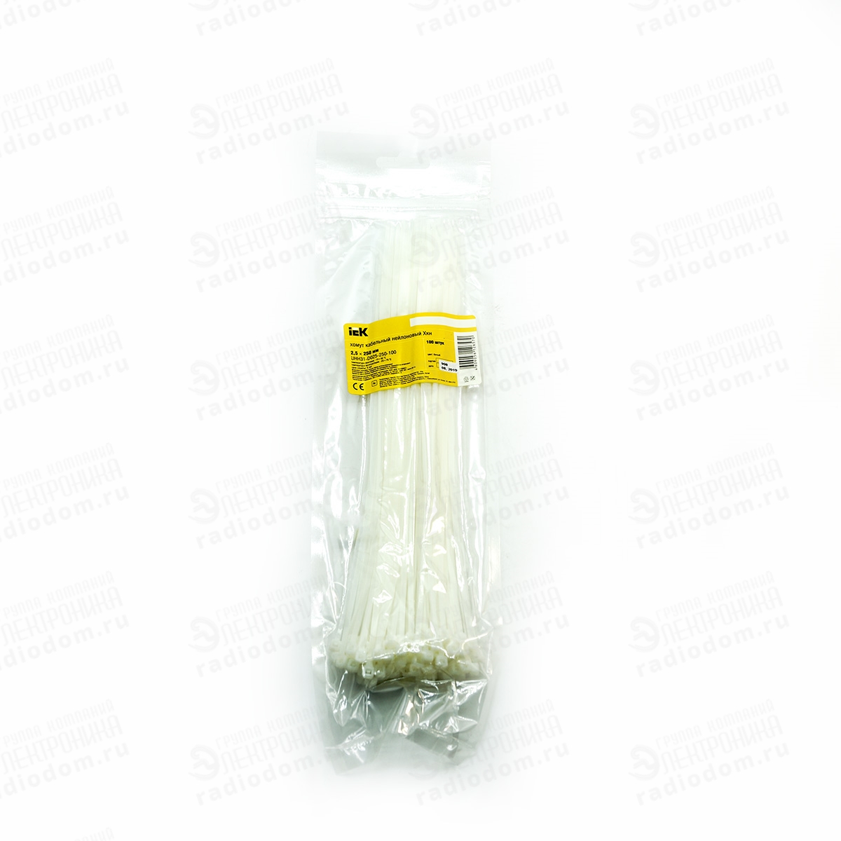 Хомут кабельный 250x2,5мм белый упаковка 100шт iEK