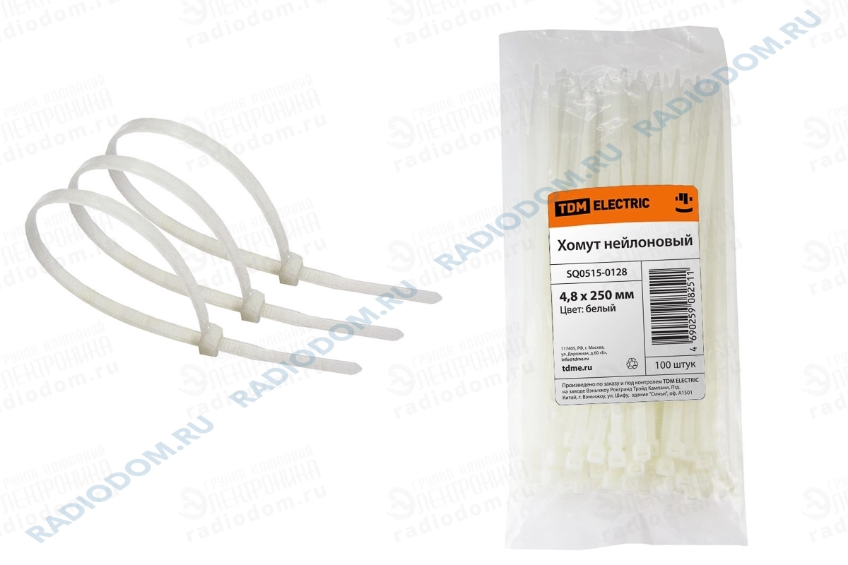 Хомут кабельный 250х4,8мм белый упаковка 100шт TDM ELECTRIC