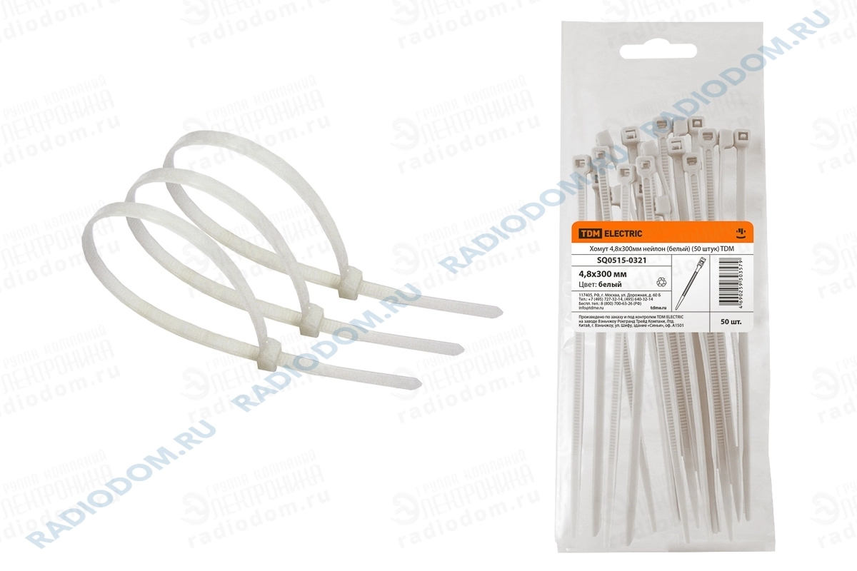 Хомут кабельный 300x4,8мм белый упаковка 50шт TDM ELECTRIC