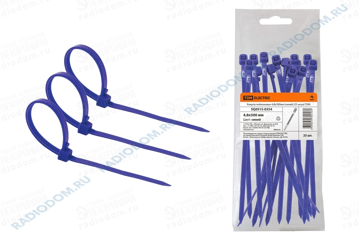 Хомут кабельный 300x4,8мм синий упаковка 25шт TDM ELECTRIC