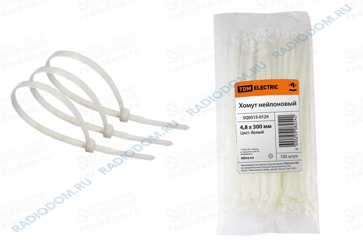 Хомут кабельный 300x4,8мм белый упаковка 100шт TDM ELECTRIC