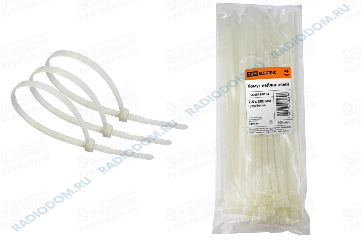 Хомут кабельный 300х7,6мм белый упаковка 100 шт TDM ELECTRIC