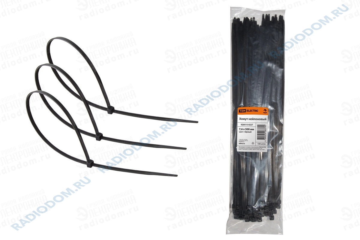 Хомут кабельный 500х7,6мм черный упаковка 100шт TDM ELECTRIC