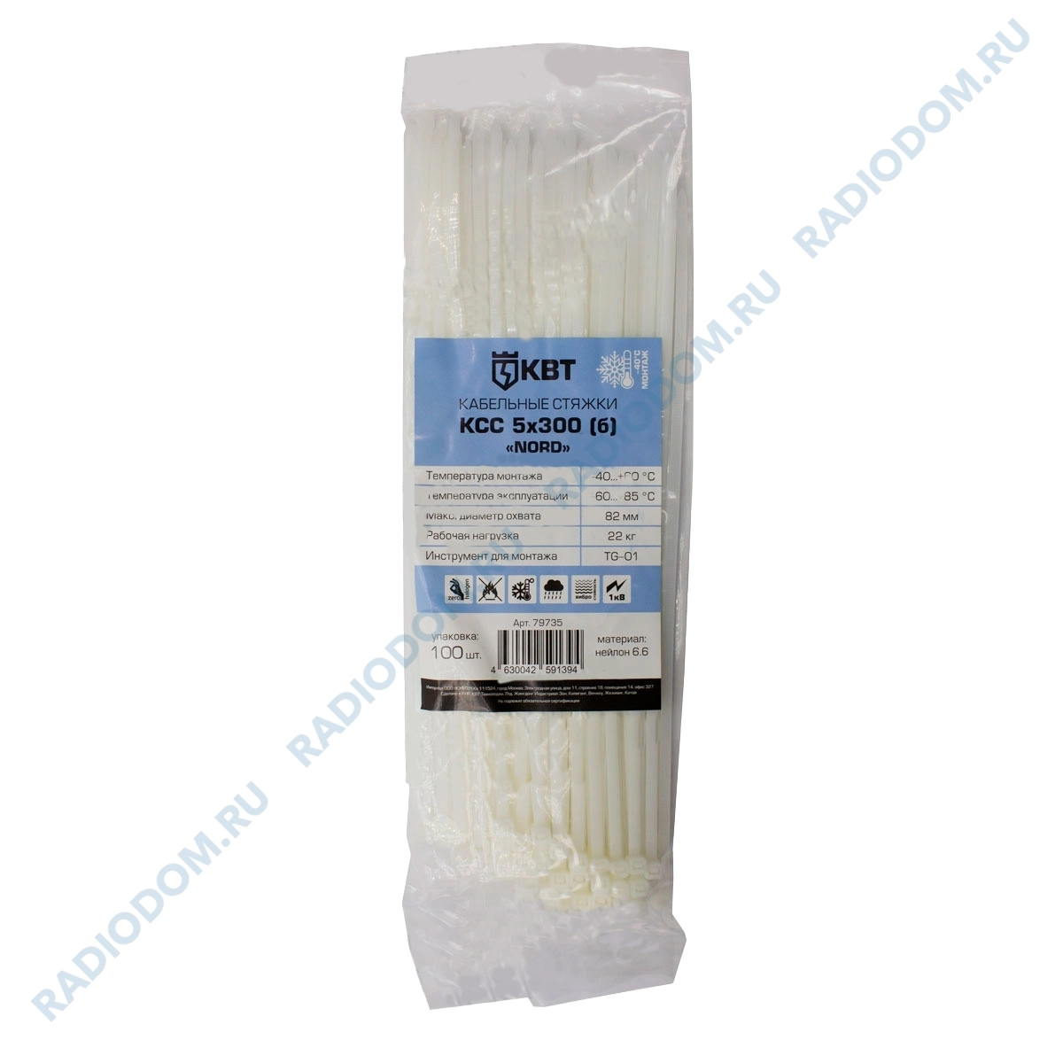 Хомут кабельный 300x5мм белый упаковка 100шт NORD КВТ