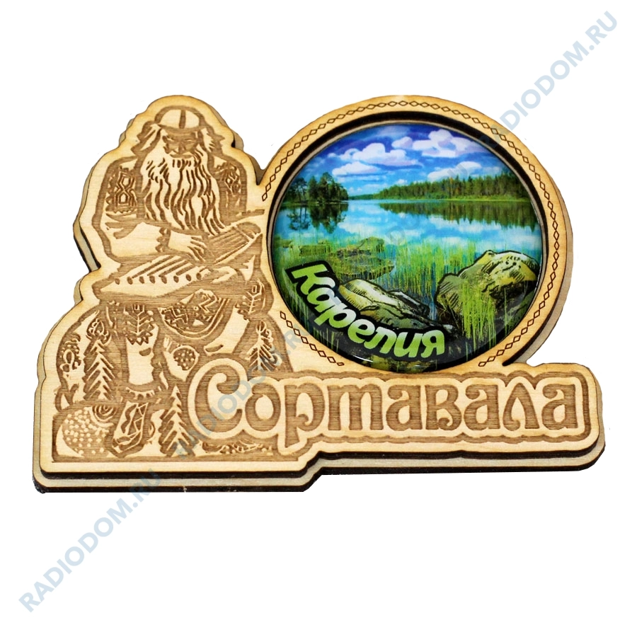 Магнит дерево резной пам-к рунопевцу "Природа" Сортавала