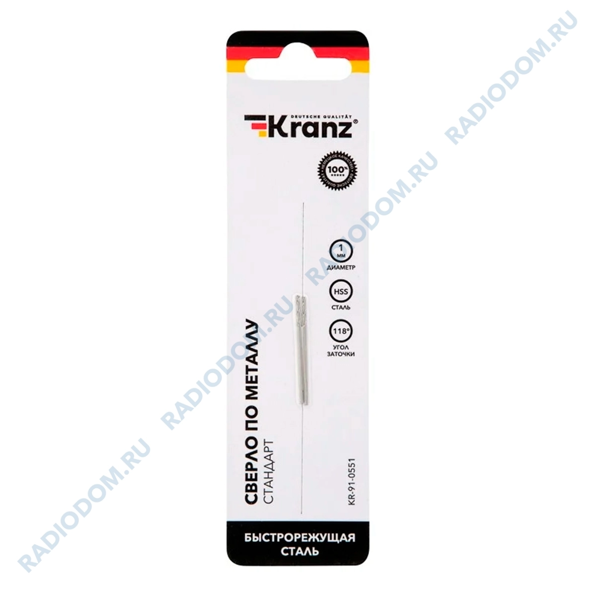 Сверло 1,0мм HSS по металлу KR-91-0551 2шт Kranz