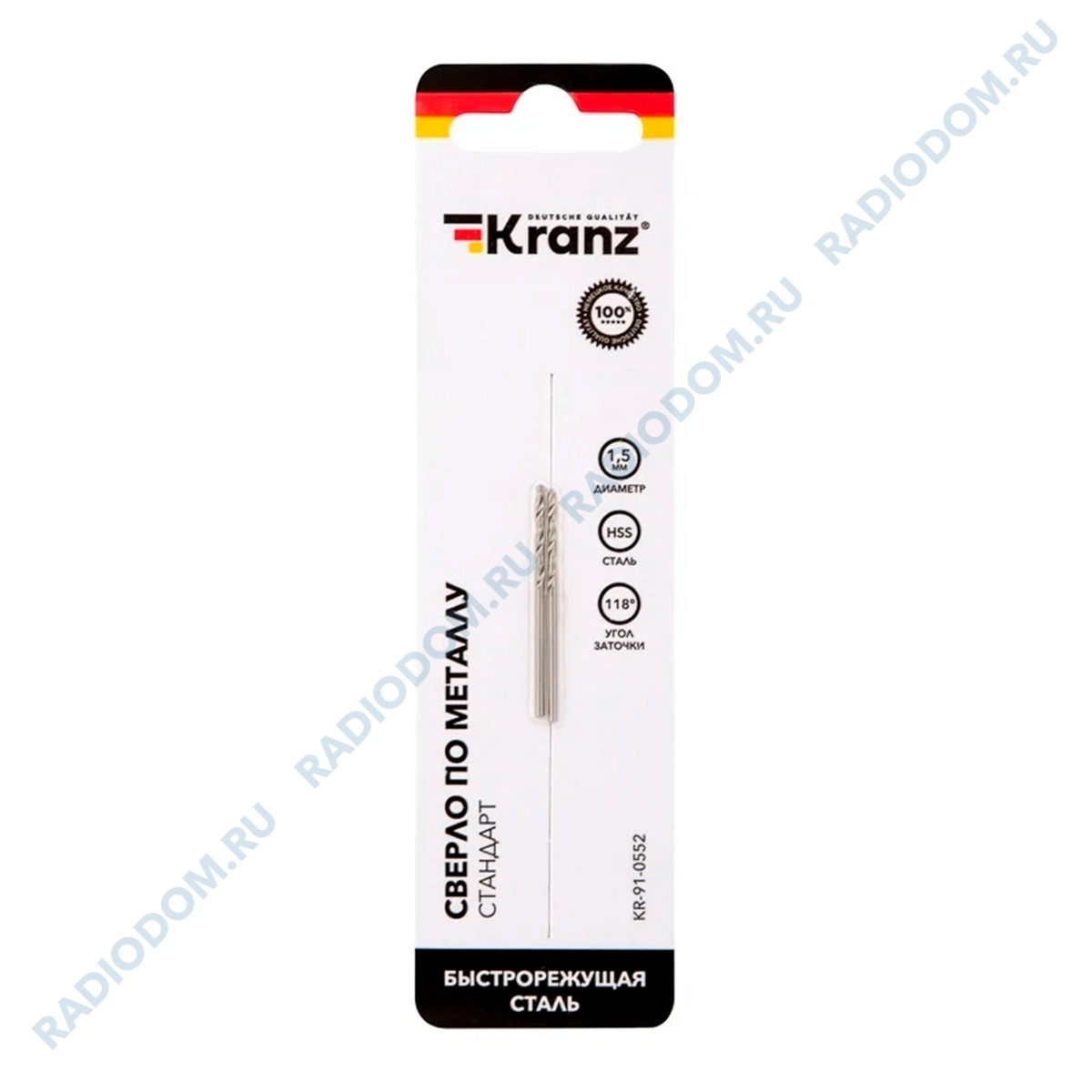 Сверло 1,5мм HSS по металлу KR-91-0552 2шт Kranz