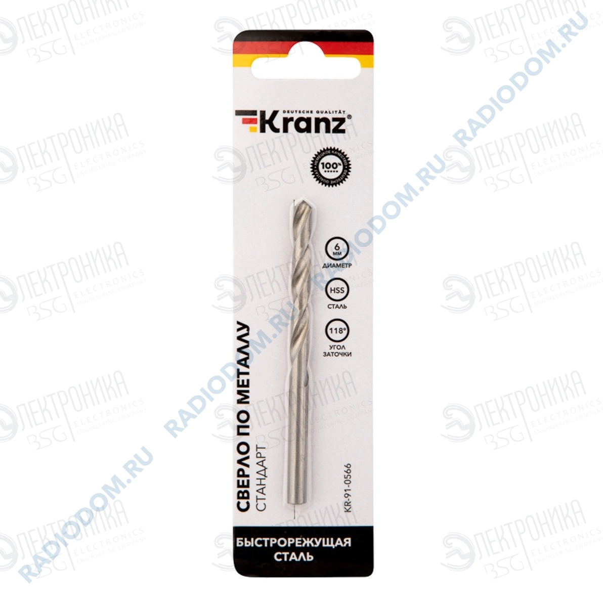 Сверло по металлу Ø 6,0мм HSS 1 шт KR-91-0566 Kranz