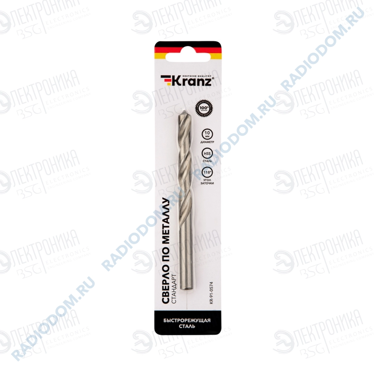 Сверло Ø 10,0мм HSS по металлу 1 шт KR-91-0574 Kranz