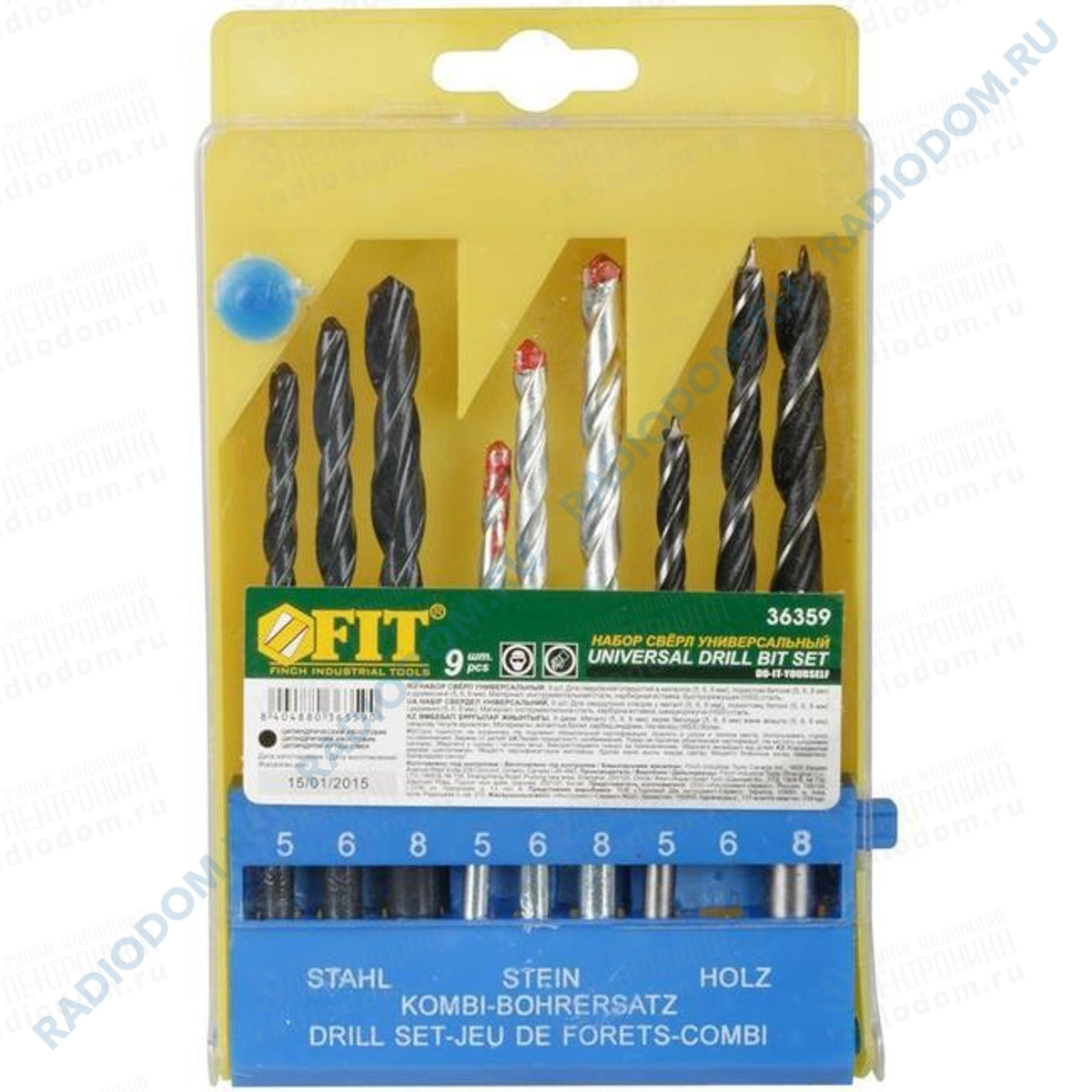 Сверла по дереву, металлу, бетону набор 9шт Ø 6,0-8,0мм 36359 FIT