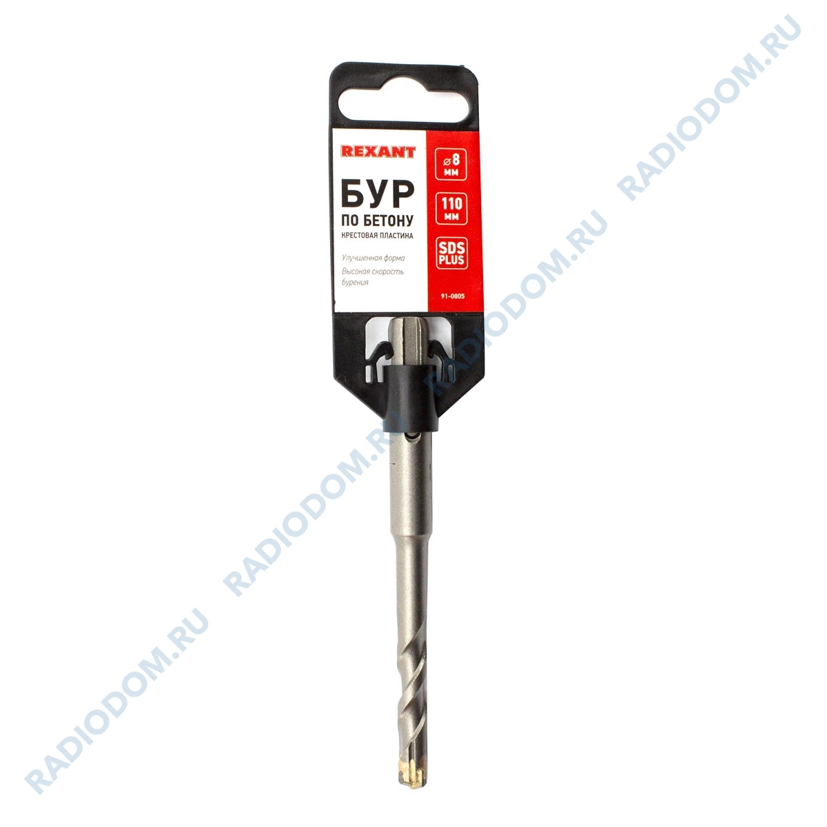 ур по бетону 8x110 мм SDS PLUS крестовая пластина REXANT — режущий инструмент, предназначен для бурения твердых материалов с легким армированием. Применяется при выполнении строительных и ремонтных работ, используется для электроинструмента. Крестообразный наконечник изготовлен из карбида вольфрама в связке кобальтом спеченным при температуре 1400 °С. Тело бура произведено из стали, легированной хромом для увеличения прочности.