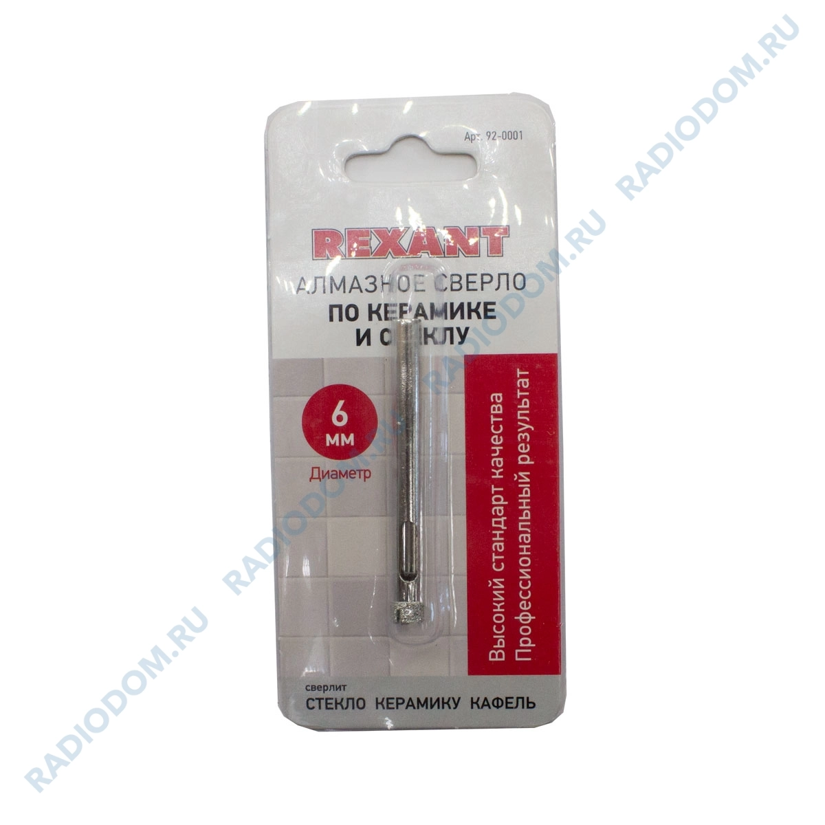 Сверло алмазное REXANT 6 мм для керамогранита. Трубчатые сверла выполнены в виде полого цилиндра. Используется совместно с дрелью или шуруповертом. Режущая кромка покрыта промышленными алмазами высокой твердости, обеспечивающими высокий ресурс сверла. Алмазные сверла требуют постоянного охлаждения водой в процессе сверления, чтобы не допустить перегрева, который негативно действует на алмазы. При перегреве алмазы легко отделяются от основы, поэтому сверлить необходимо на малых оборотах.