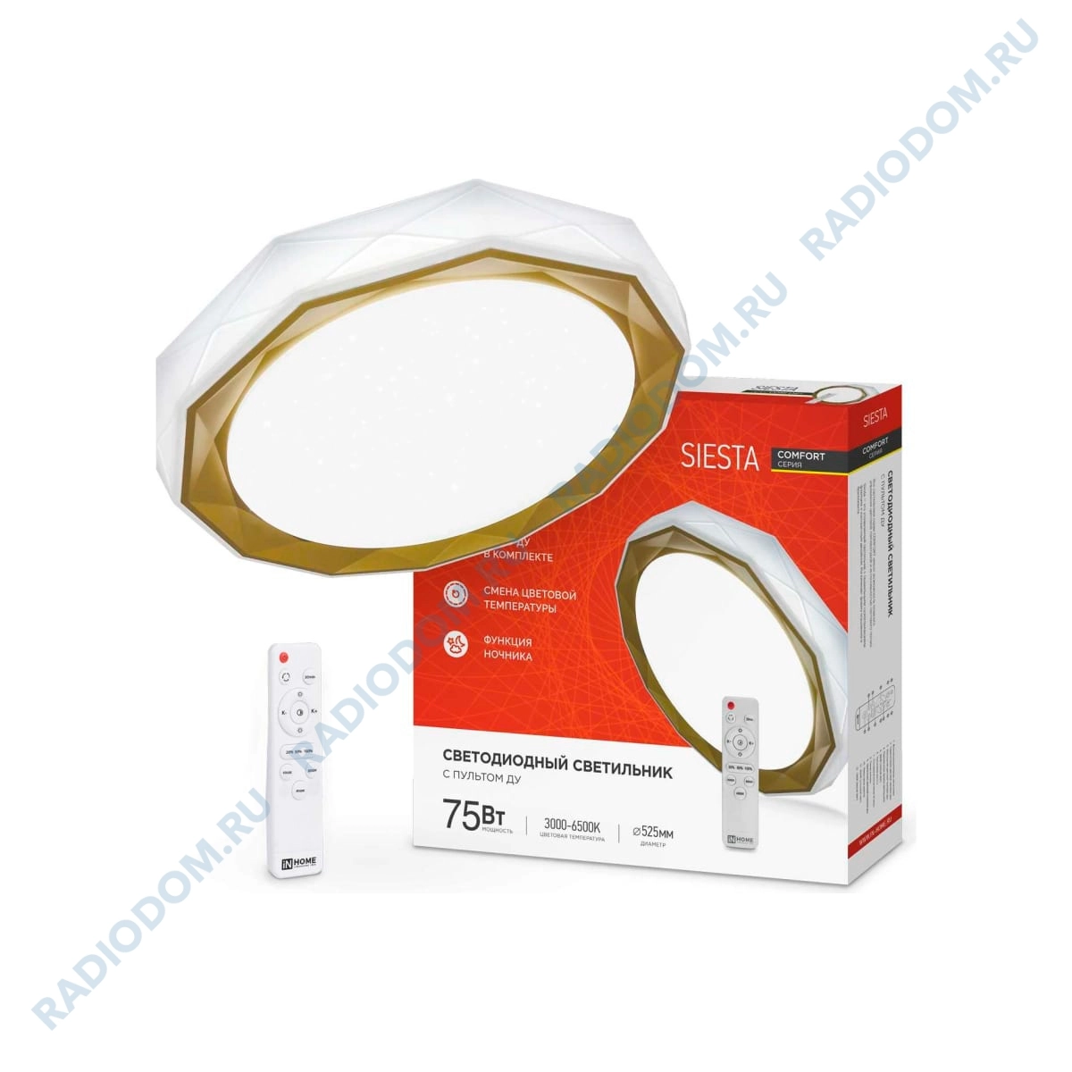 Светильник cветодиодный COMFORT SIESTA 75Вт 3000-6500K с пультом ДУ 4690612035161 IN HOME