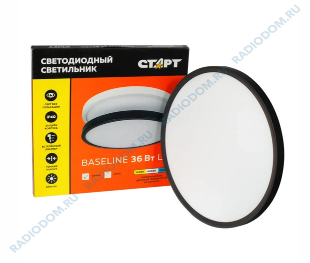 Светильник потолочный светодиодный 2700-6500К 36Вт черный круг СТАРТ