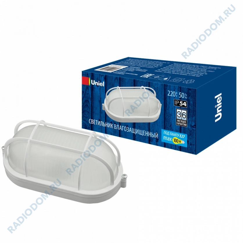Светильн. влагозащ Е27 100Вт IP54 UWL-O02 овальный решетка бел ЖКХ Uniel