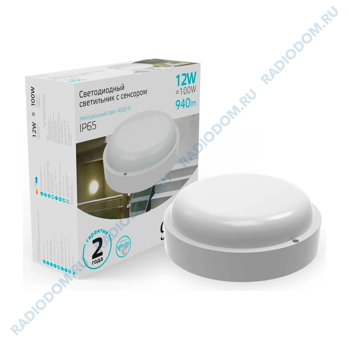 Светильник светодиодный влагозащищенный 12Вт с микроволновым датчиком движения IP65 4000K gauss 126411212-S