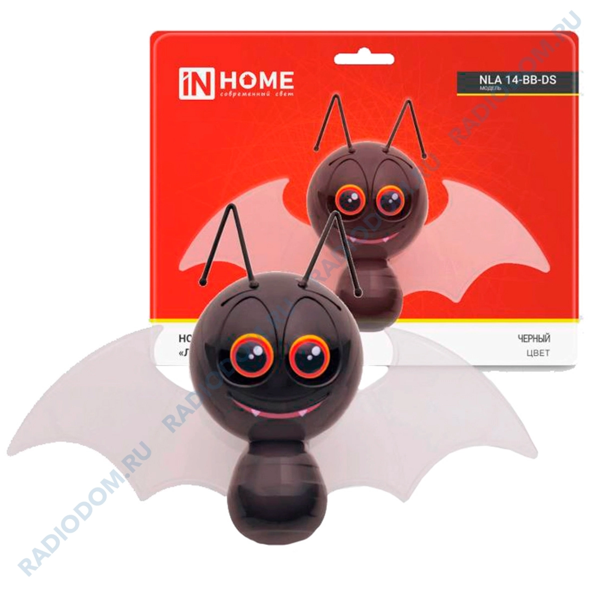 Светильник ночник Летучая мышка 230Вт черная с датчиком освещения 4690612039992 IN HOME