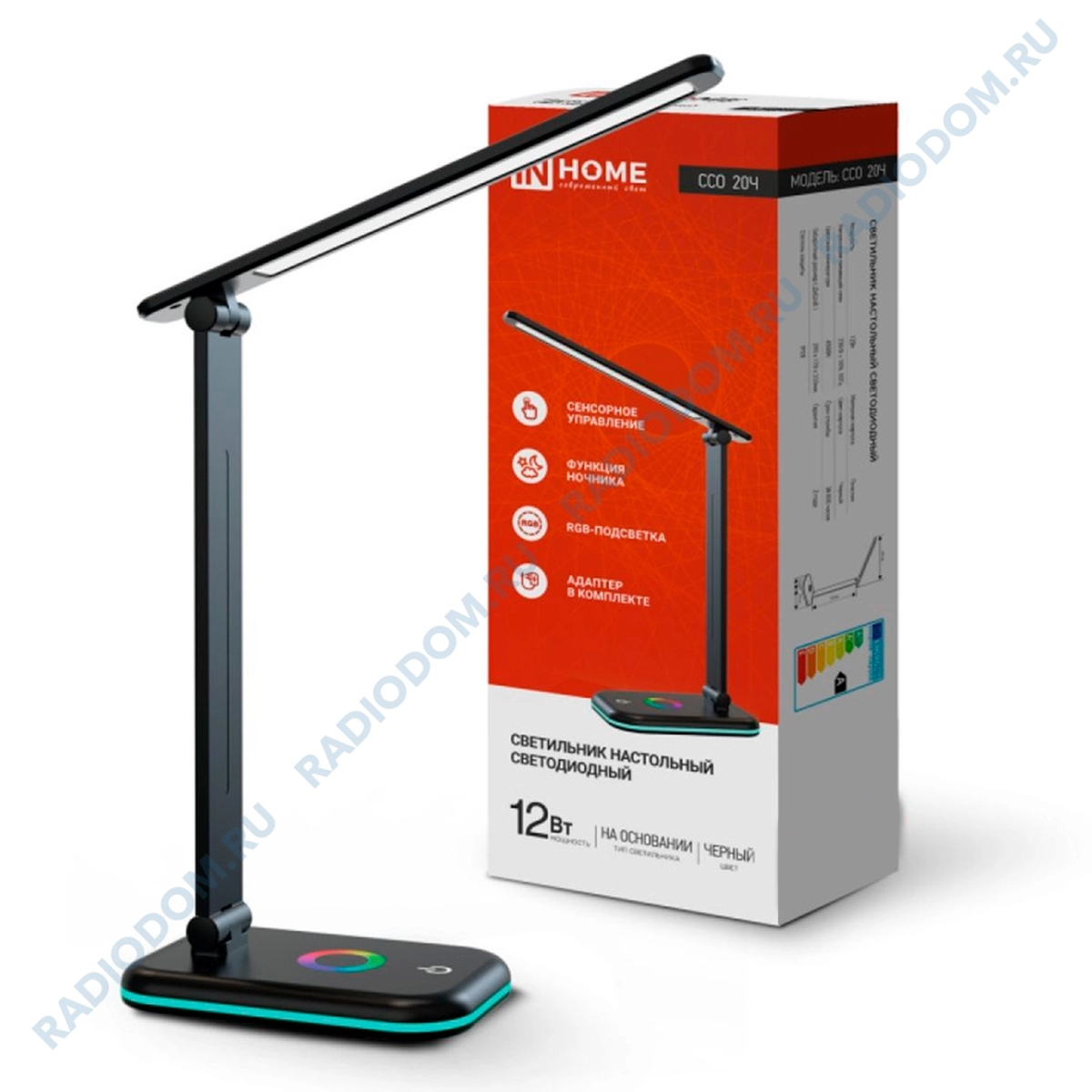 Светильник настольный светодиодный 12Вт PLUS ССО-20Ч RGB-подсветка, сенсор, с адаптером ЧЕРНЫЙ 4690612041100 IN HOME