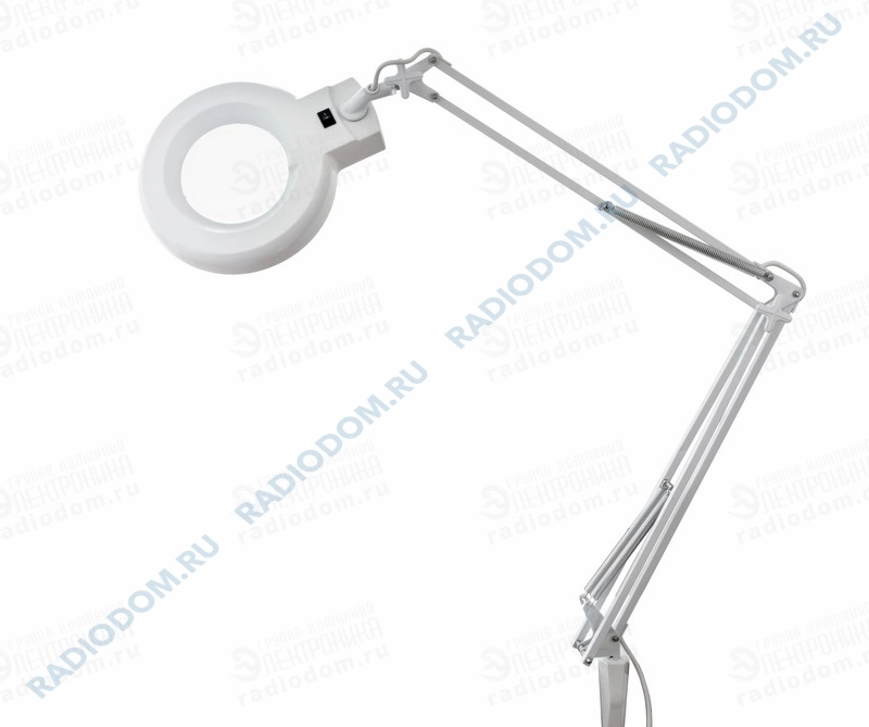 Лупа настольная под лампу G10q 3х белая на струбцине Rexant