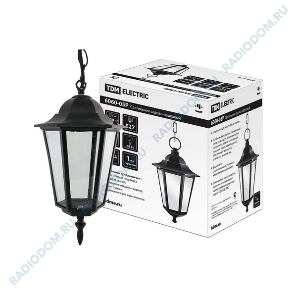 Светильник садово-парковый 6060-05Р 60Вт Е27 IP44 подвесной черный TDM ELECTRIC
