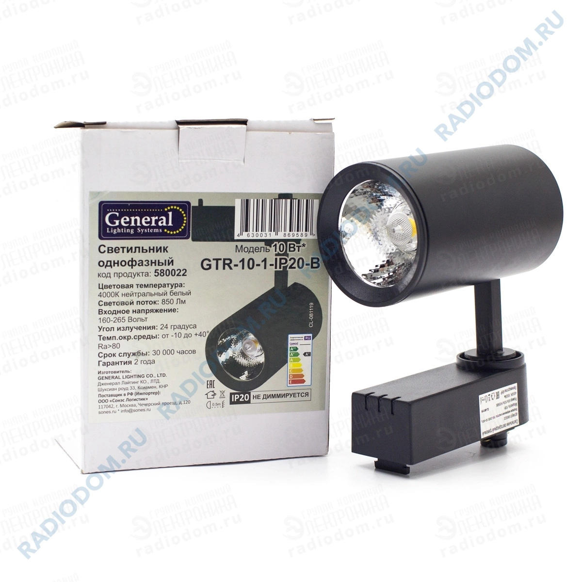 Светильник трековый светодиодный GTR-10-1-IP20-B 10Вт 4000K черный General
