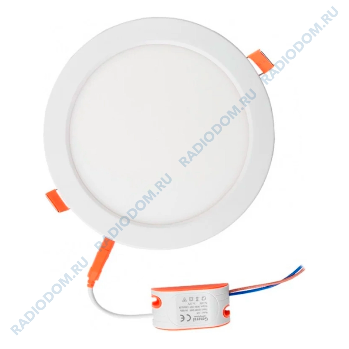 Светильник встраиваемый светодиодный 18Вт 1386лм 4500K круглый Ø20,5см белый IP40 GLP-RW13-225-18-4 General