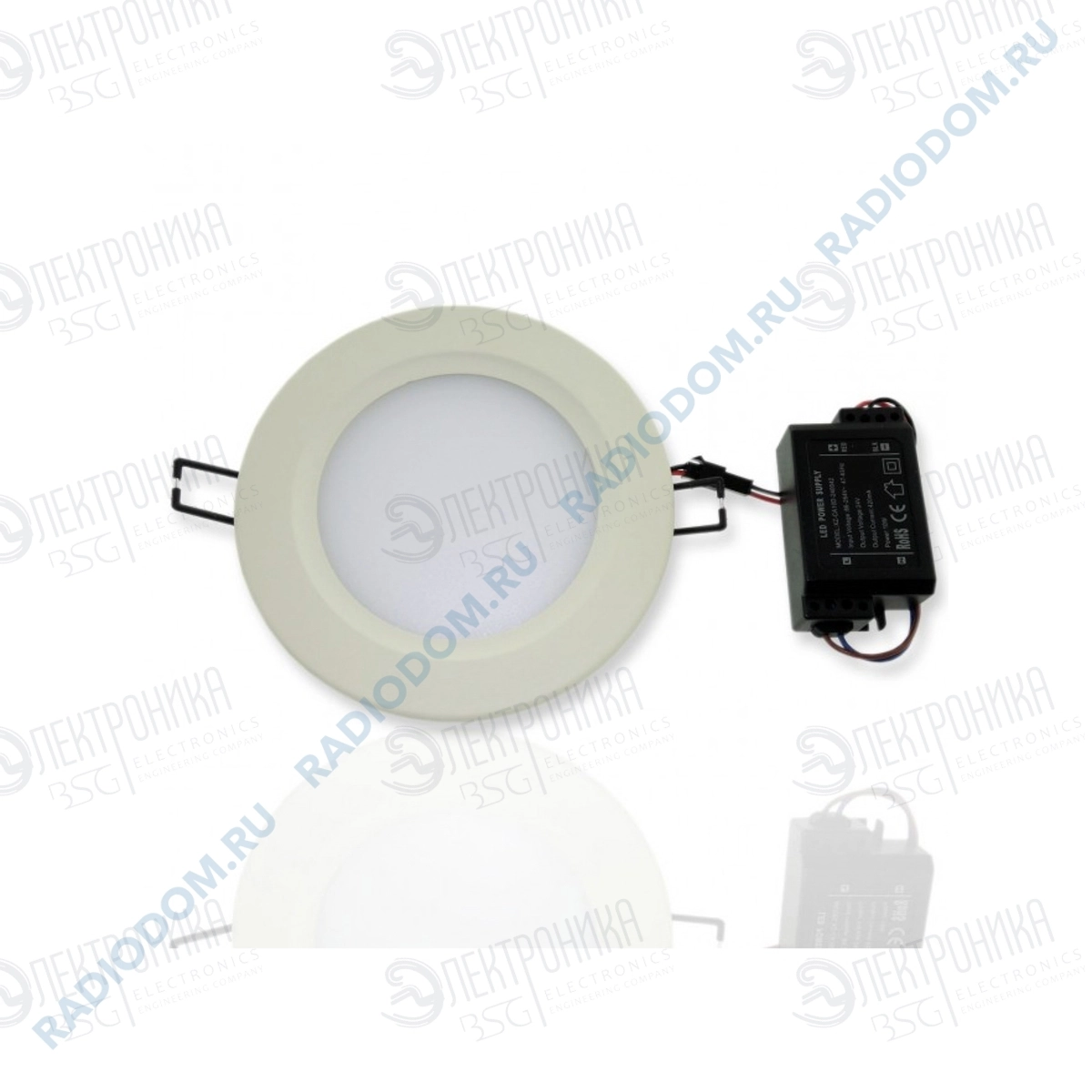Ультратонкий светодиодный светильник. Тип светодиода NICHIA, с возможностью диммирования, керамический белый корпус, круглый диаметром 140мм ( под отверстие 125мм). Напряжение 220V, мощность 5,5W, цвет свечения белый 6000K, световой поток 280Lm, коэффициент CRI>80.