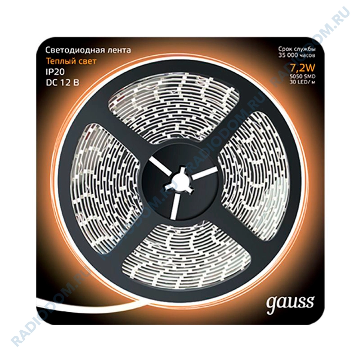 Светодиодная лента SMD5050 12В 1м белый IP20 gauss