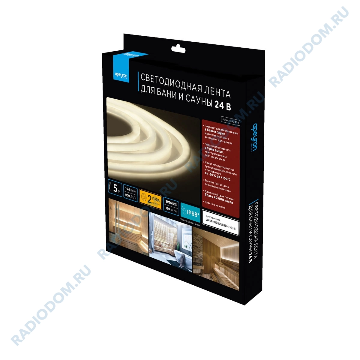 Светодиодная лента для бани и сауны до 100° SMD2835 24В 14,4Вт белый IP68 Apeyron