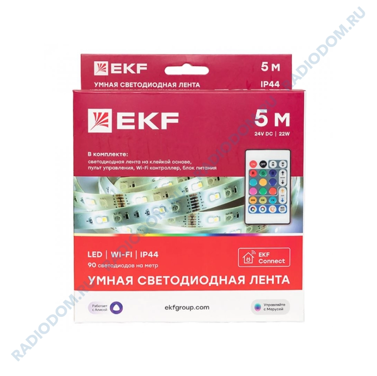 Умная светодиодная Wi-Fi лента EKF HomeConnect 5м 12В 22Вт IP44 EKF