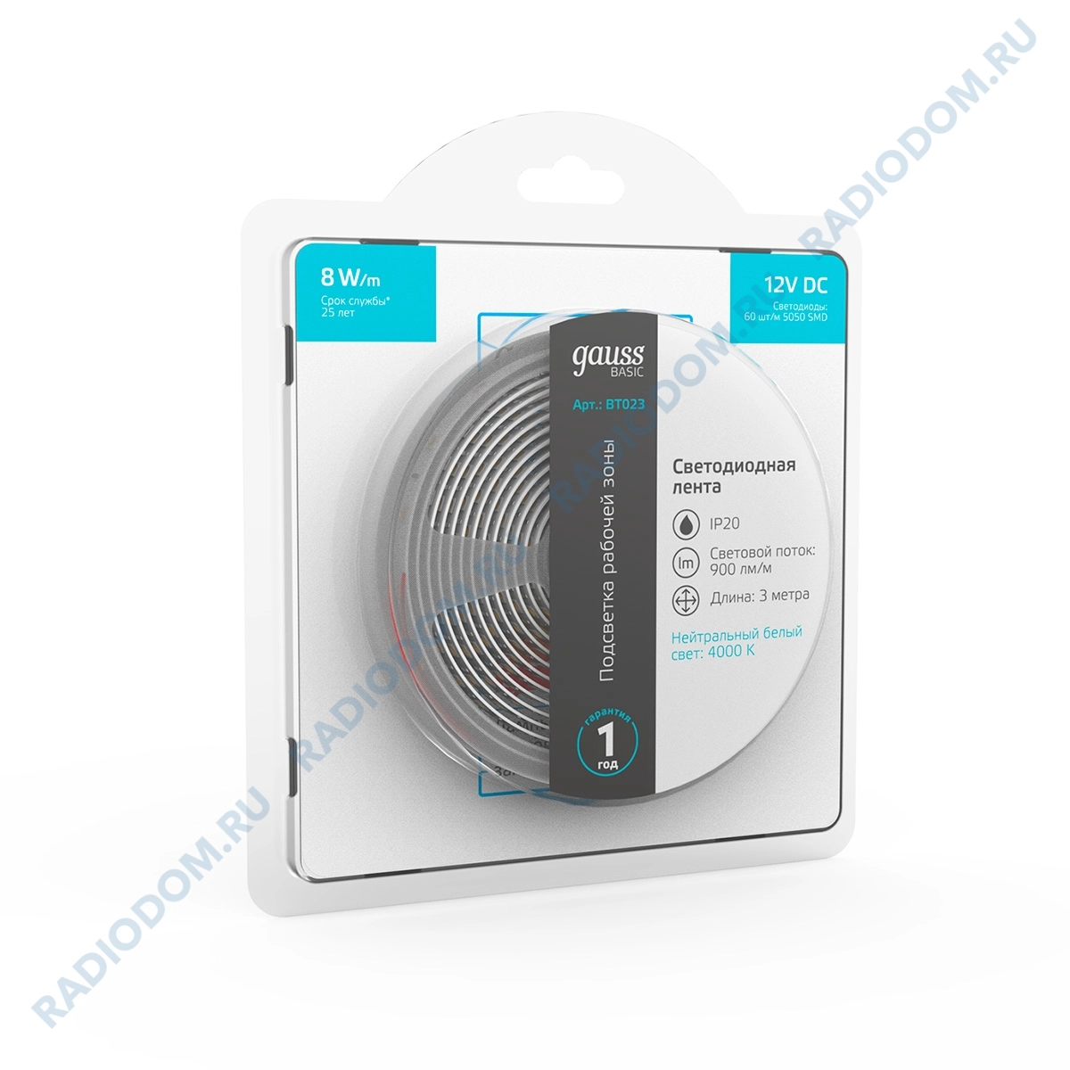 Светодиодная лента SMD5050 12В 8Вт белая IP20 gauss 3 метра