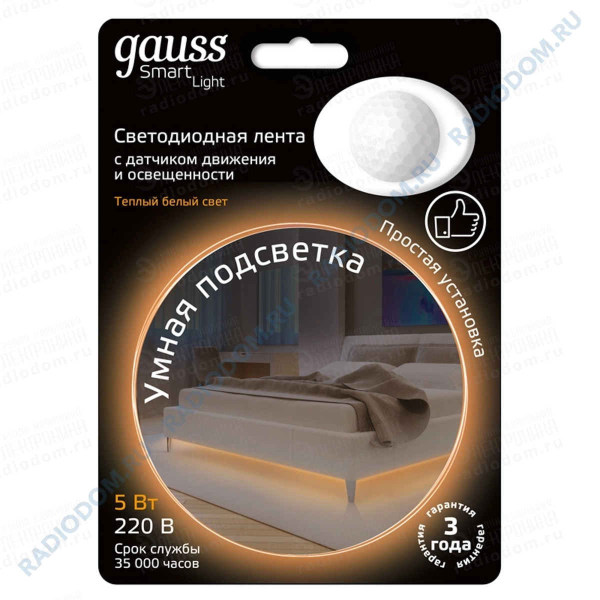 Светодиодная лента "Умная подсветка" гермитичная белая (теплая) с датчиком движения gauss