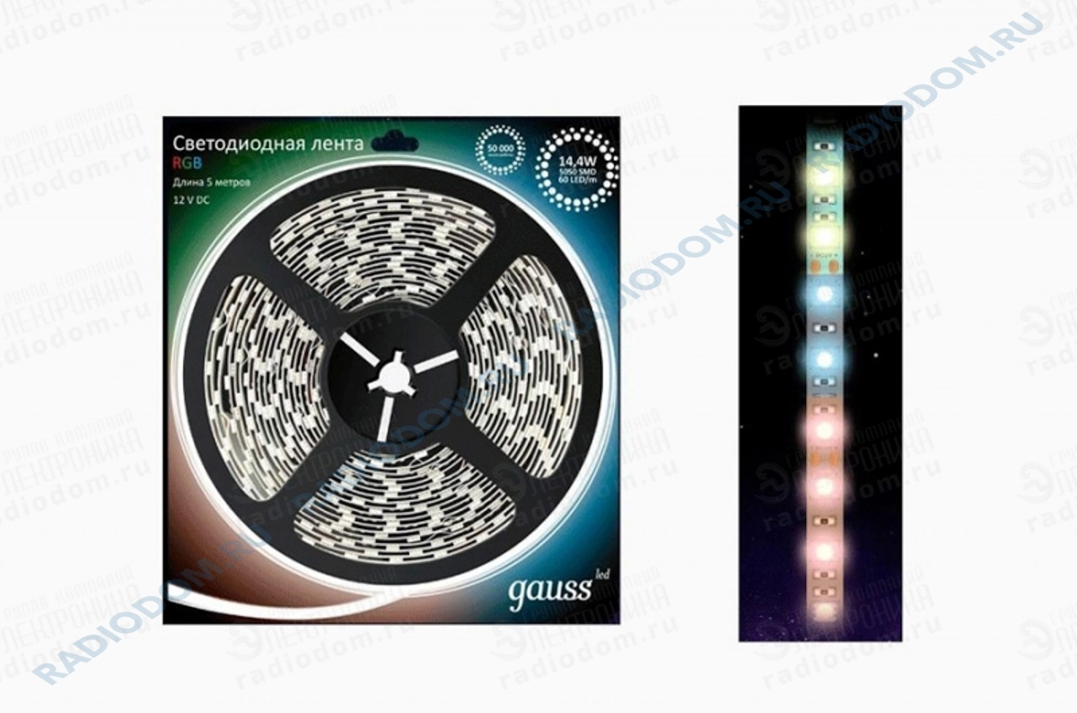 Светодиодная лента SMD5050 12В 14.4Вт RGB IP20 gauss