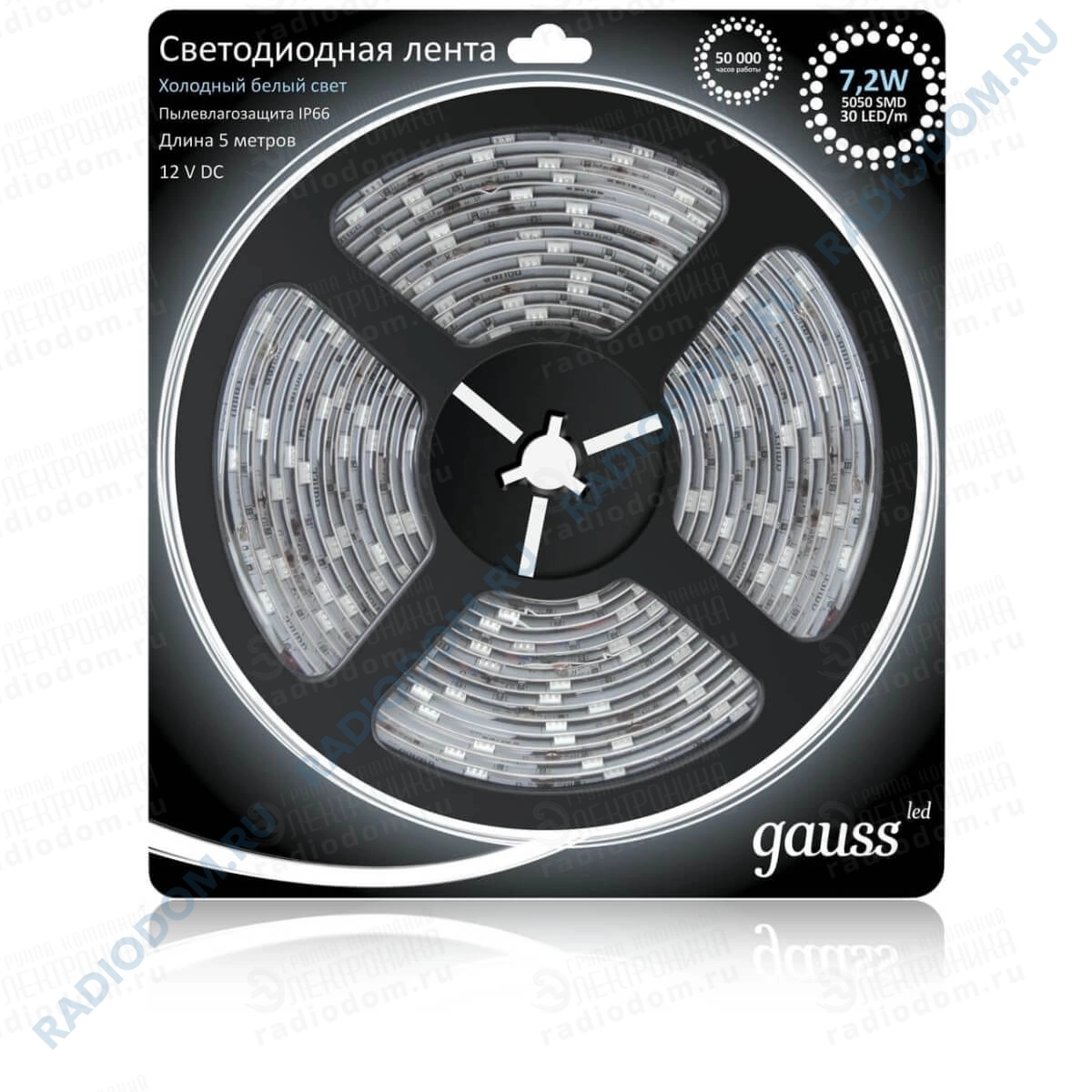 Светодиодная лента SMD5050 12В 7,2Вт Холодный белый IP66 gauss