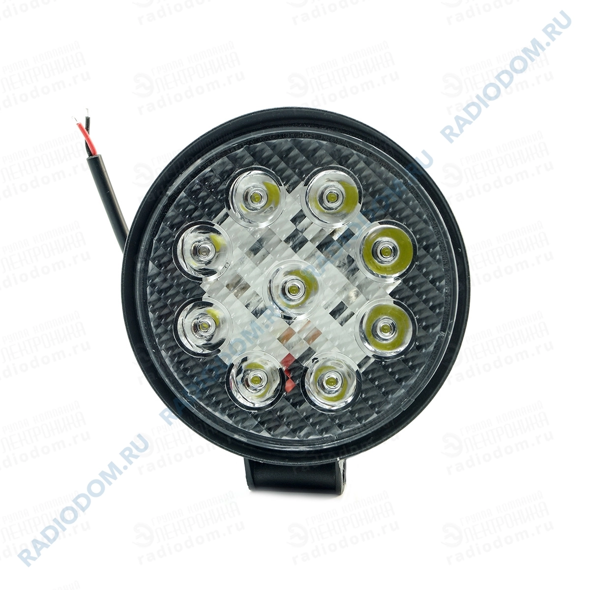 Универсальная фара мощностью 27Вт работает от напряжения 9-32В. 9 светодиодов выдают яркий рассеянный ближний свет в 1400Лм. Отличное решение для дополнительного освещения на дороге и плохо освещенных участках. Алюминиевый корпус фары служит радиатором охлаждения. Степень защиты IP67 позволяет использовать фару в любых погодных условиях.